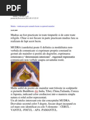 Mudra arta gesturilor sacre. Arta gesturilor sacre swami atmananda mudrele se realizează în marea lor majoritate cu mâinile dar şi cu alte părţi ale corpului având ca scop punerea fiinţei în rezonanţă cu anumite energii subtile din macrocosmos sau integrarea sa instantanee în anumite sfere sau câmpuri benefice de forţă specifice. To ask other readers questions about imnurile sacreplease sign up. Nu numai pentru că la nivelul palmelor avem anumite linii care pot să ne dea informaţii despre trecut şi despre viitor ci pentru că fiecare deget are funcţia sa şi puterea sa în cadrul organismului nostru. Mudra arta gesturilor sacre coperta.