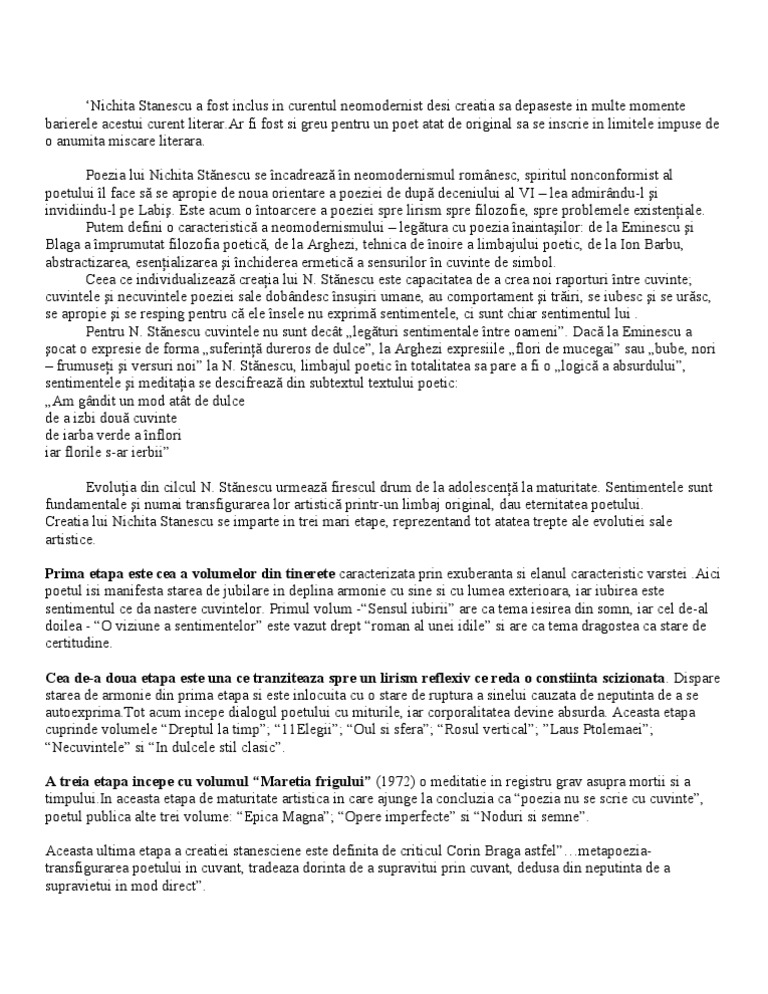 Nichita Stanescu O Viziune A Sentimentelor