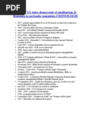 In cei 20 de ani ai perioadei interbelice s au perindat la cârma ţării 30 de guverne si au avut loc 10 alegeri generale. Secolul xx între democraţie şi totalitarism ideologii şi practici politice în românia şi în europa. în secolul xx în europa şi în lume au existat atât ideologii democratice cum ar fi liberalismul conservatorismul socialismul cât şi ideologii totalitare cum ar fi fascismul nazismul comunismul.